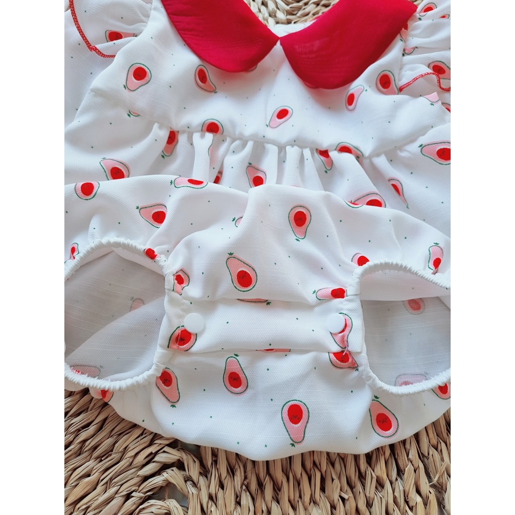 Body quả bơ. đỏ đẹp xuất sắc với thiết kế cánh tiên tay dài kèm nón giày. 👉Chất liệu: Đũi lạnh đẹp lịm tim phối cổ vải tơ nến