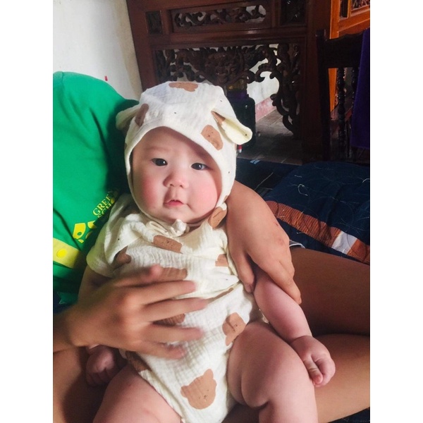 Giới thiệu Body xô muslin siêu thoáng kèm mũ cho bé trai, bé gái
