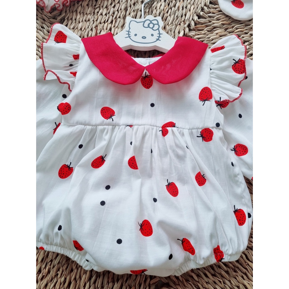 Giới thiệu Bodysuit bé gái sơ sinh [𝐓𝐀̣̆𝐍𝐆 𝐊𝐄̀𝐌 MŨ + 𝐆𝐈𝐀̀𝐘 𝐕𝐀̉𝐈 SU SHOP- Body quả dâu