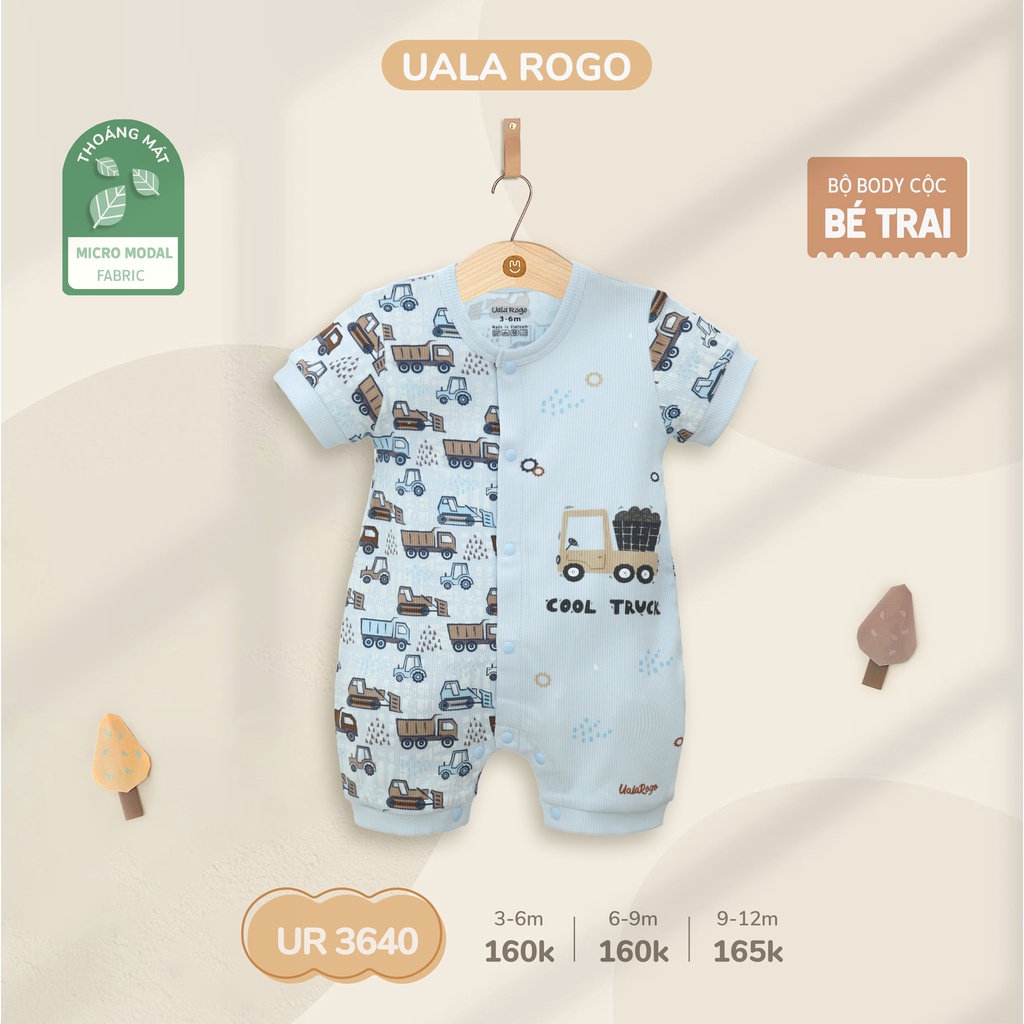 Thời Trang Trẻ Em > Quần áo em bé > Áo liền quần > Bodysuit Ualarogo cho bé 3-12 tháng vải Modal cúc giữa cộc tay mềm mại thoáng mát co giãn hoạ tiết ô tô