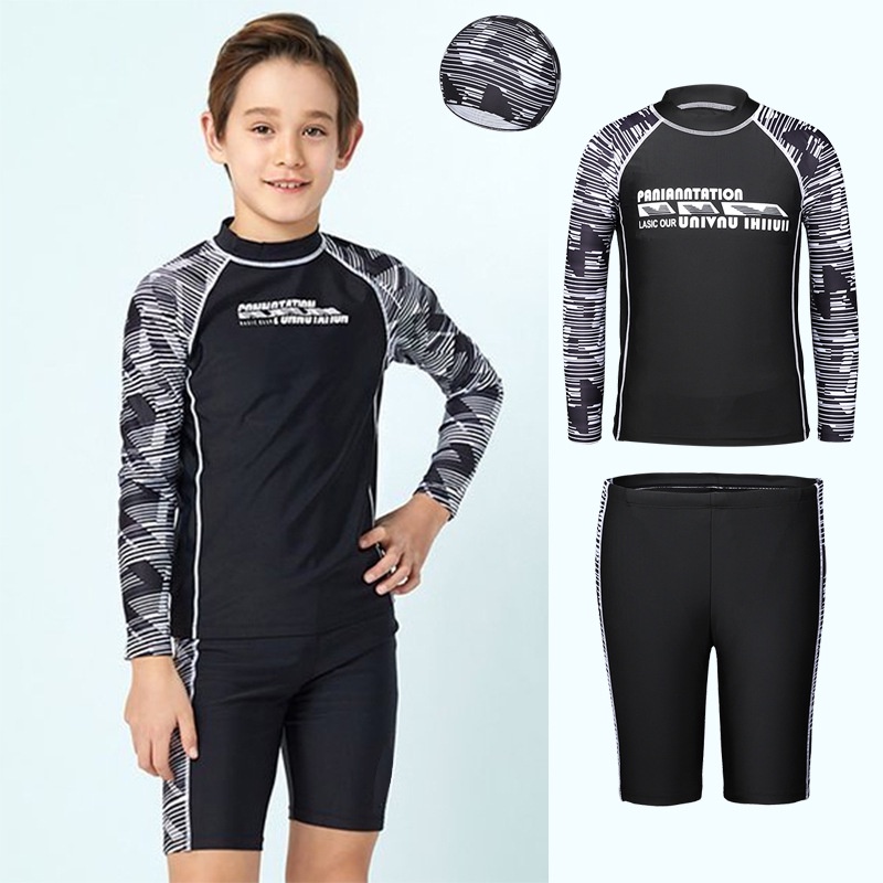 Giới thiệu Bộ Đồ Bơi 3 Món Dài Tay Nhanh Khô Kèm Nón Thời Trang Cho Bé Trai 8-14 Tuổi