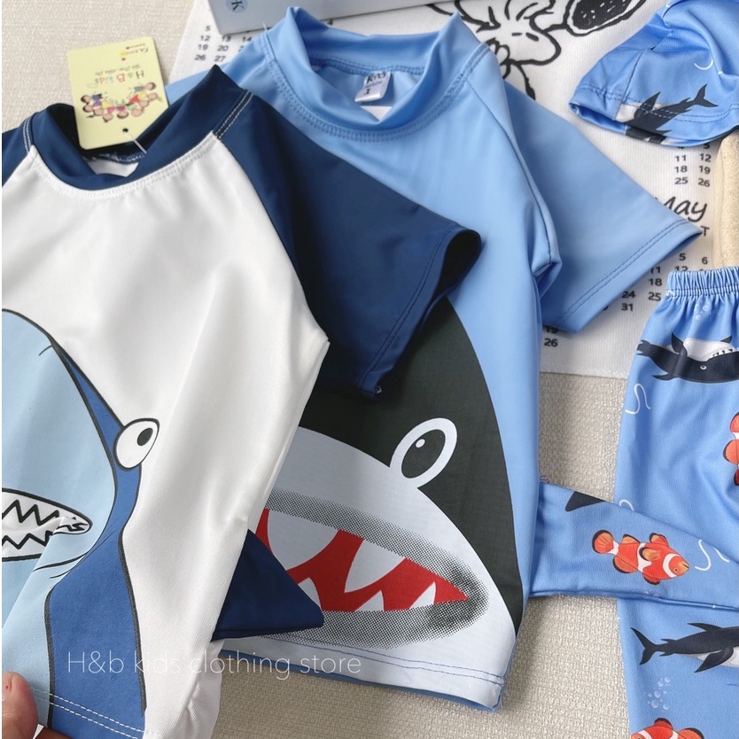 Bộ đồ bơi bé trai kèm mũ 8-21kg [Hỗ trợ đổi size] Bộ bơi, đồ đi biển cho bé trai từ 1 đến 9 tuổi ~~~~~~~~~~~~~~~~~~ THÔNG TIN SẢN PHẨM - Tên sản phẩm: Đồ bơi trẻ em, đồ bơi bé trai kèm mũ 8-21kg. Bộ bơi cho bé trai là món đồ không thể thiếu của mỗi bé trong tủ quần áo. - Chất liệu: Chất liệu đồ bơi là Polyester cao cấp mịn thoải mái, dày dặn, co giãn tốt tạo cảm giác thoải mái khi bơi. - Thiết kế: Các đường may của đồ bơi cho bé là chắc chắn và ôm sát, không gây ma sát nhiều với da, giúp cử động thoải mái dưới nước - Màu sắc: Bộ bơi bé trai kèm mũ có 2 màu xanh và trắng - Giá bán lẻ: 170.000đ/ bộ. Một set đồ bơi trẻ em liền thân gồm quần áo + mũ - Size: Đồ bơi bé trai, bộ đồ bơi cho bé họa tiết năng động đủ size chiều cao Size 1: 8-10kg Size 2: 11-12kg Size 3: 13-14kg Size 4: 14-15kg Size 5: 16-17kg Size 6: 18-19kg Size 7: 20-21kg ❌Các mẹ vui lòng ghi chú cân nặng của bé khi đặt hàng nhé! ❌
