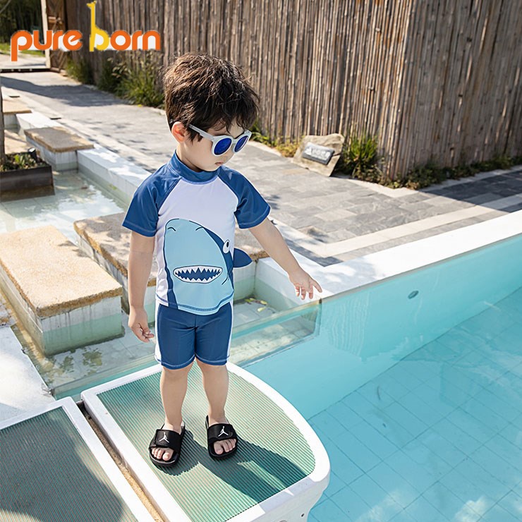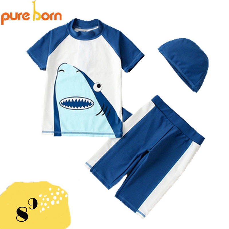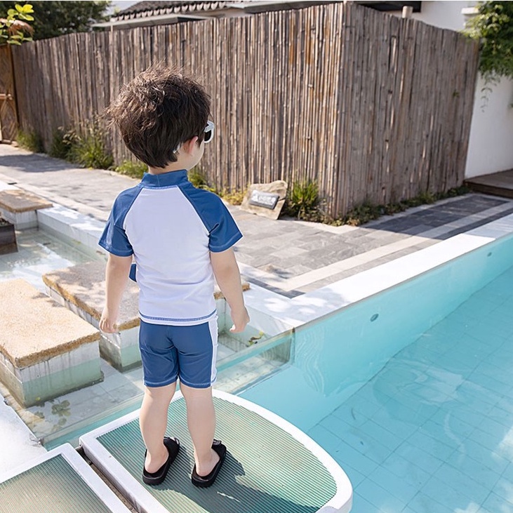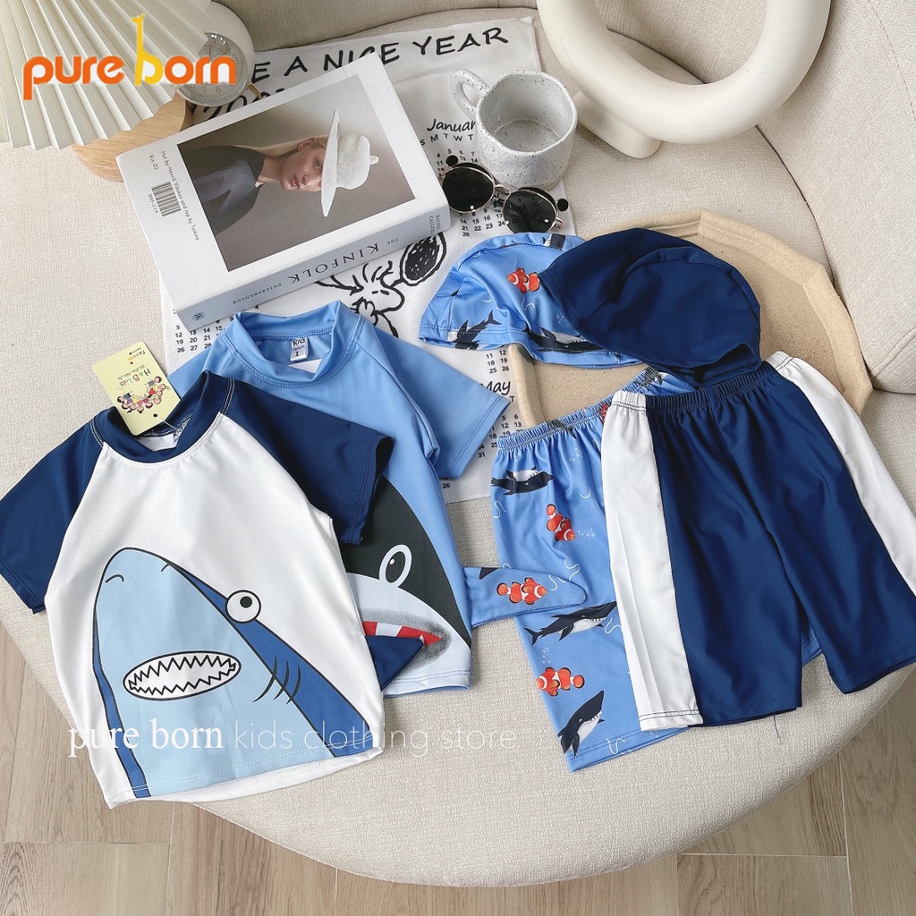 Giới thiệu Bộ đồ bơi bé trai kèm mũ 8-21kg [Hỗ trợ đổi size] Bộ bơi, đồ đi biển cho bé trai từ 1 đến 9 tuổi