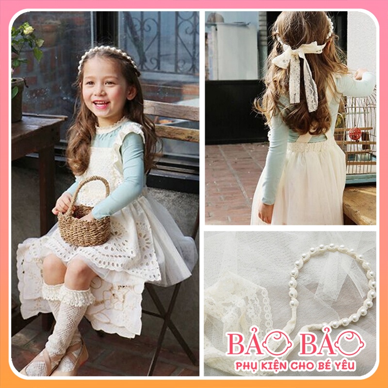 Bờm ren trắng đính ngọc tiểu thư cho bé gái phong cách Pháp Retro - Turban cho bé gái phụ kiện chụp ảnh cho bé