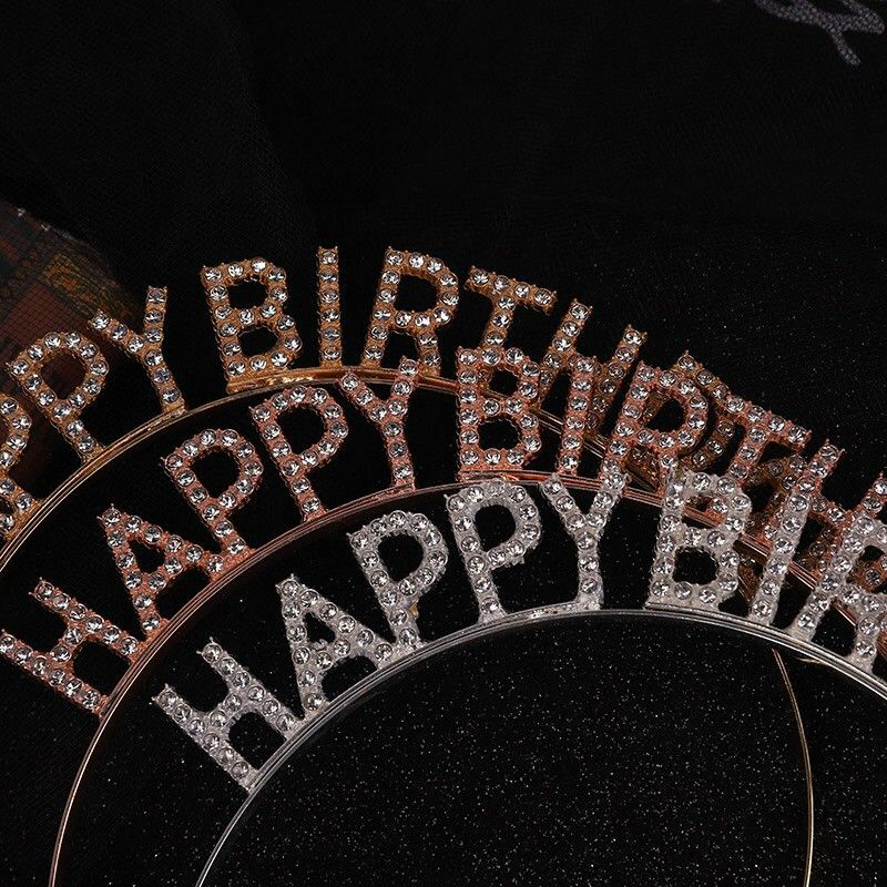 Bờm Tóc Happy Birthday Giáng Sinh Bờm Tóc Sinh Nhật Đính Đá Hợp Kim Xược Tóc Bờm Tóc Phụ Kiện Chụp Hình