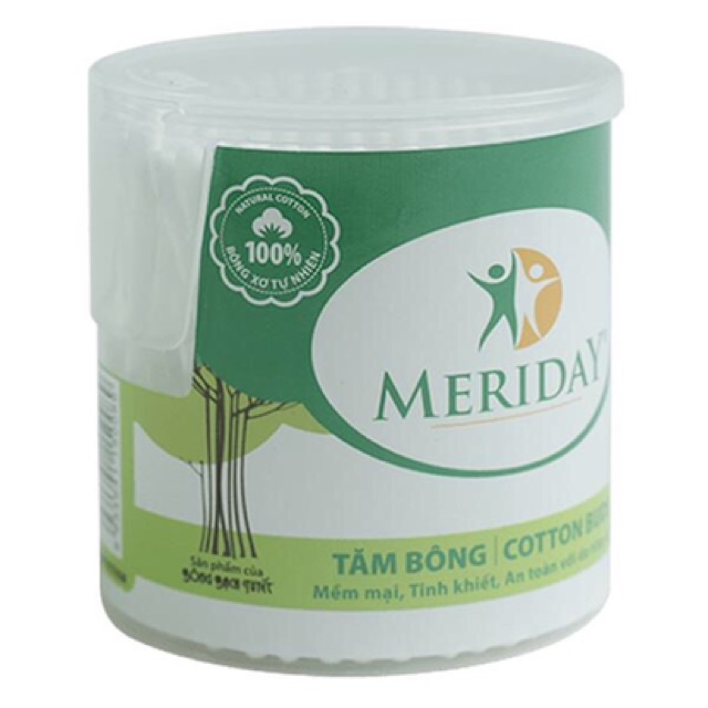 Tăm bông Meriday được làm từ 100% bông xơ tự nhiên, không pha sợi polyester, an toàn sạch sẽ không gây kích ứng kể cả khi sử dụng cho trẻ em.