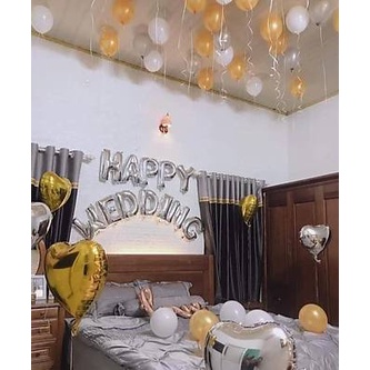 Giới thiệu Bóng bay trang trí phòng cưới ❤️Tặng 100 cánh hoa hồng❤️ Set bóng trang trí phòng cưới, phòng tân hôn màu vàng