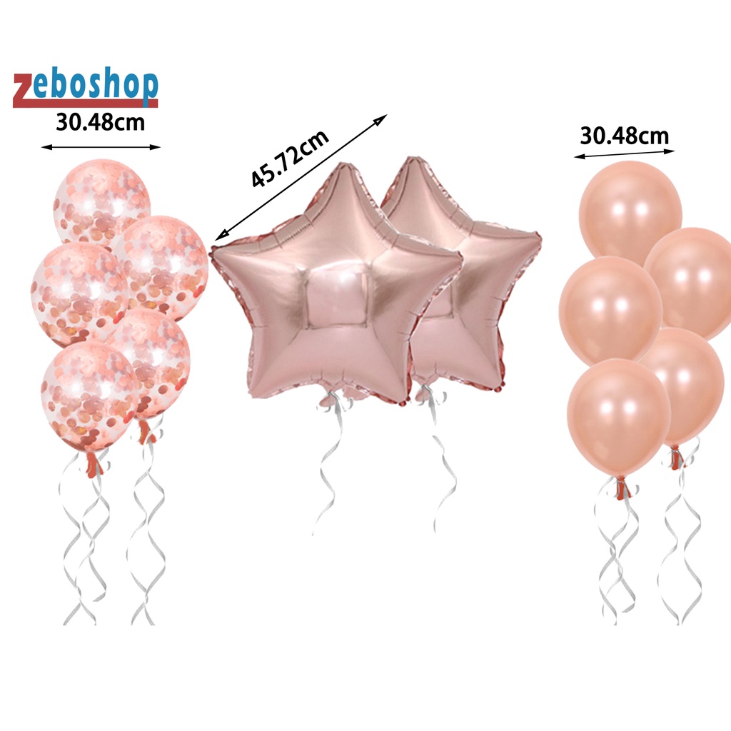 Bong bóng sequin là 12 inch , bong bóng cao su là 12 inch và bong bóng ngôi sao năm cánh là 18 inch .