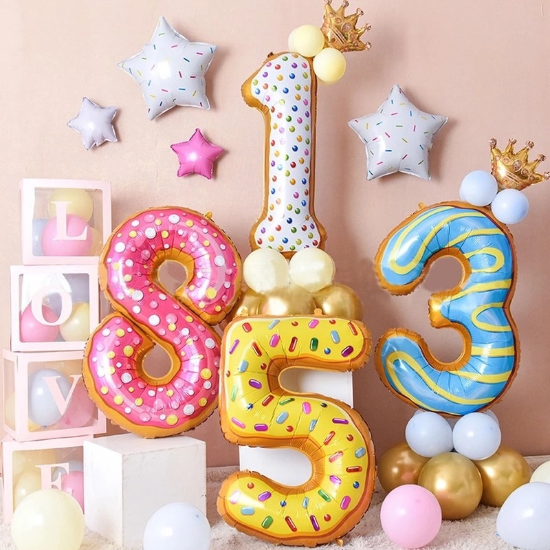 Giới thiệu Bong Bóng Lá Nhôm Hình Số/Bánh Donut/Kem Kỹ Thuật Số 32inch Trang Trí Tiệc Sinh Nhật