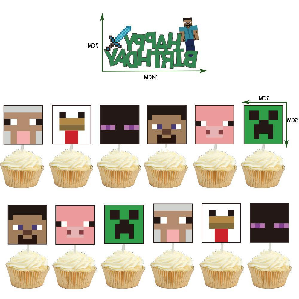 welcome to startopoele2.vn store Brand new and high quality!!! ☞☞☞Product information☜☜☜ Material: High-grade white cardboard Size: as shown Theme: Minecraft The package includes: 1* banner 12* cupcake topper 1* big cake topper 24* latex balloons