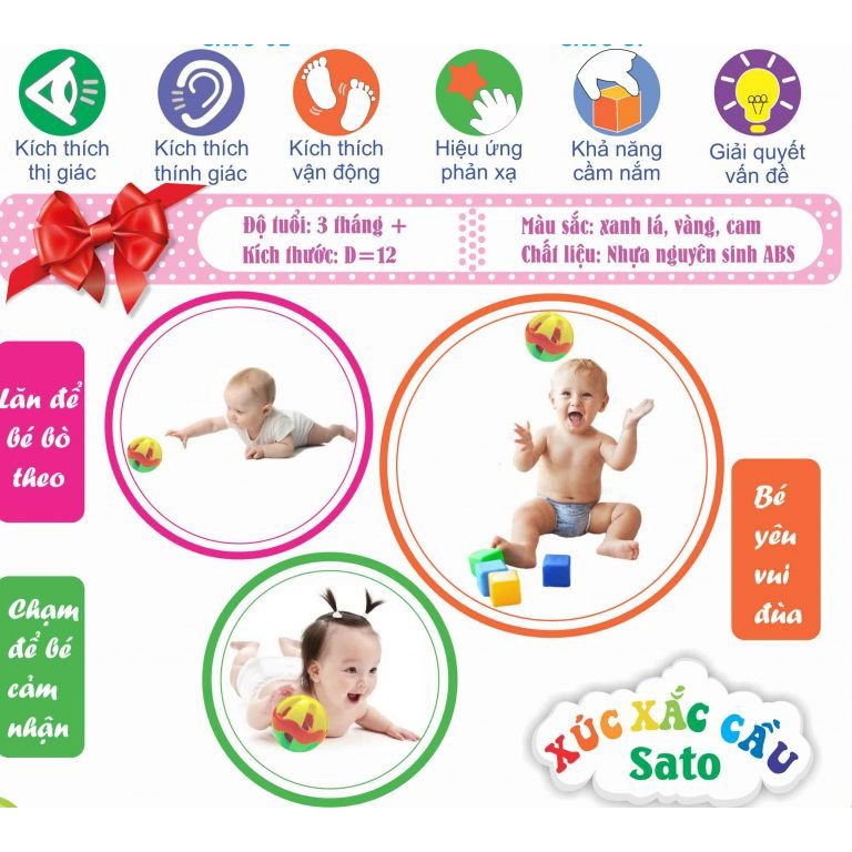 Khi vừa sinh ra các bé đã có thể cầm nắm một số vật nhỏ xung quanh mà bé chạm phải nhưng giai đoạn tốt nhất để cho các bé thực sự phát triển khả năng cầm nắm của mình là từ 3 tháng tuổi trở lên. Ở giai đoạn này các bé nhận biết được mọi thứ xung quanh mình rõ ràng hơn, đôi bàn tay cũng trở lên khéo léo để cầm mọi thứ chắc chắn hơn. Đây là khoảng thời gian tốt nhất để bố mẹ cho các bé tập chơi các loại đồ chơi có tính chất cầm, nắm. Đồ chơi xúc xắc trẻ em mang tính vận động sẽ là lựa chọn tuyệt vời nhất cho các bậc phụ huynh vào lúc này. Sản phẩm Xúc Xắc Quả Cầu là một sản phẩm đồ chơi khá thú vị mà bố mẹ có thể dành cho bé trong độ tuổi này. Cũng như một số đồ chơi xúc xắc trẻ em khác, Xúc Xắc Quả Cầumang lại sự thích thú cho bé qua những màu sắc rực rỡ. tươi sáng và âm thanh vui nhộn. Xúc Xắc Quả Cầu giúp bé nhận biết các loại âm thanh và phát triển khả năng cầm, nắm đồ vật. Xúc Xắc Quả Cầu chắc chắn là món quà đáng yêu và ý nghĩa nhất dành cho thiên thần nhỏ của bạn. ĐẶC ĐIỂM NỔI BÂT + Bộ sản phẩm được làm từ 100% nhựa nguyên sinh, đảm bảo tuyệt đối an toàn cho bé khi vui chơi, đặc biệt là khi bé cầm, nắm và gặm sản phẩm. +Các chi tiết được thiết kế không có ba via, các cạnh sắc đều được vê tròn, đảm bảo an toàn cho trẻ khi sử dụng. + Màu sắc đa dạng, phong phú và rất bắt mắt với trẻ nhỏ + Âm thanh vui nhộn, có độ lớn vừa phải, phù hợp với thính giác của trẻ. 🍀 MẸ BEN cam kết: ☑Sản phẩm đúng mẫu mã như ảnh và video chụp. ☑ Sản phẩm đúng mẫu mã, mô tả, quảng cáo mọi thông tin sai lệch quảng cáo shop xin chịu trách nhiệm. ☑100% Đổi trả miễn phí với sản phẩm phát sinh lỗi từ nhà sản xuất trong vòng 7 ngày kể từ lúc Qúy khách nhận được hàng. ☑ Đơn hàng được xử lý ngay khi nhận được thông tin để đảm bảo có thể đến tay khách hàng sớm nhất. ☑Ba mẹ vui lòng quay lại video mở gói hàng sau khi nhận để được shop hỗ trợ những vấn đề liên quan. #dochoichobe #dochoigiaoduc #dochoisosinh #xucxac #sato #dochoivietnam #quabongsato #xucxacsato #xucxacvietnam #luclac#dochoiantoan#dochoitresosinh