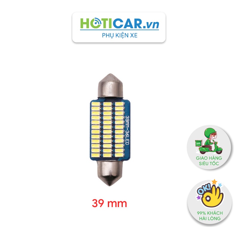 Bóng đèn LED trần xe hơi F3014-36 sử dụng chip LED 3014 hiện đại, mang lại độ sáng cao và tuổi thọ dài. Bóng đèn trần xe F3014-36 có nhiều kích thước phù hợp để thay thế bóng đèn Halogen truyền thống ở nhiều dòng xe.