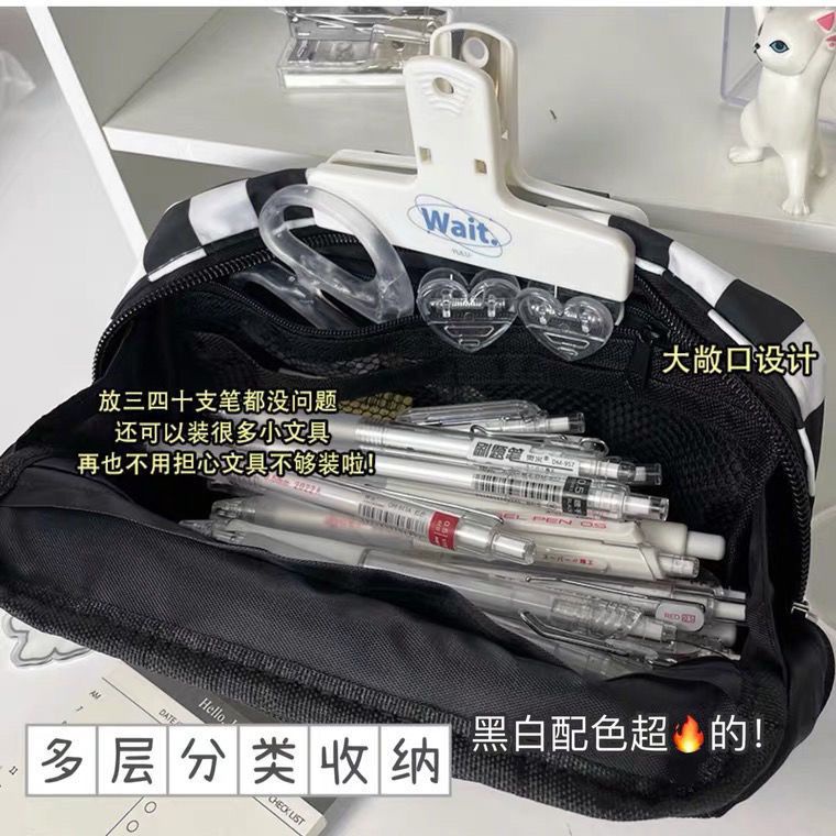 Thương hiệu: SMALL SUN / Little SUN Hộp đựng bút chì Mori Checkerboard đơn giản có giá trị cao-công suất lớn-chức năng đa chức năng Túi lưu trữ đa lớp Hộp đựng bút chì sinh viên