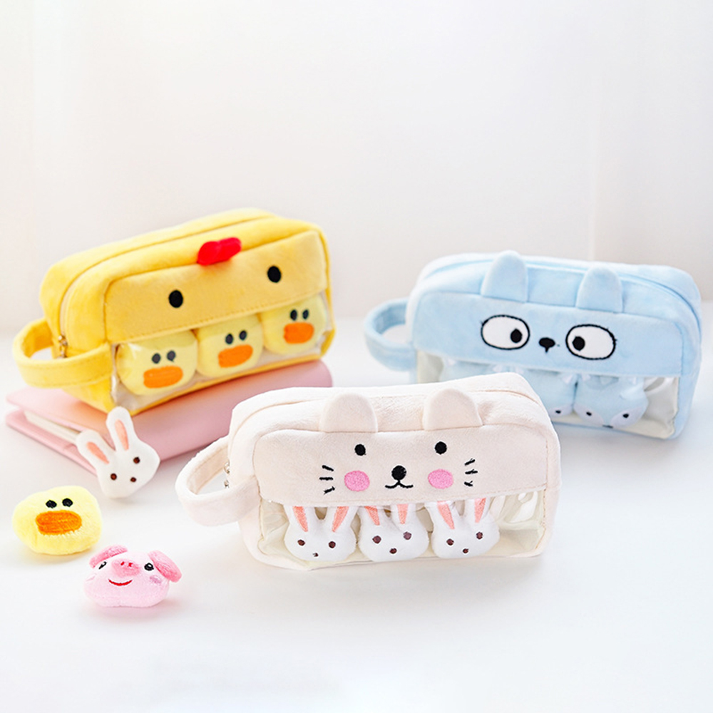 Size: 18*9*6.5cmName: Pencil BagColor:Yellow,Pink,White,BluePackage include: 1pc Pencil BagMaterial:Plush