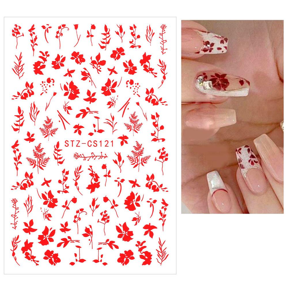 Đóng gói ' 1 cái x Miếng dán móng tay 3D Dán móng tay 3D Hoa Lá Đen Trắng Cây đơn giản Mùa hè Thực vật Keo dán Decal Tự làm móng tay Trang trí nội thất