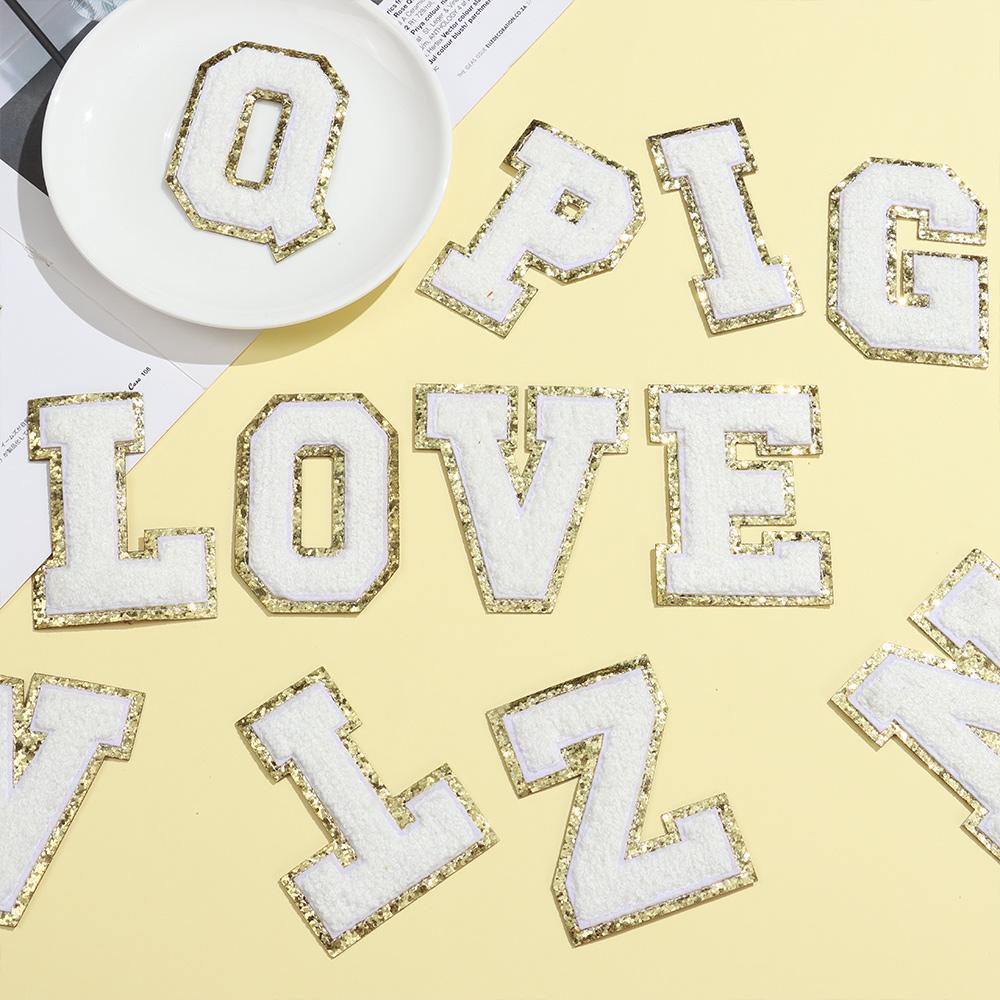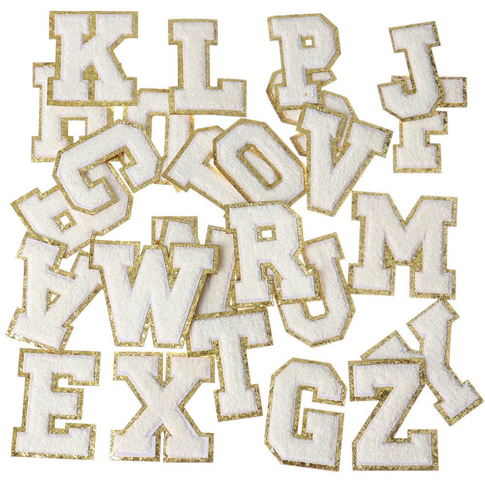 3,1cm '0,39 '. Miếng dán khăn May trên miếng dán Chữ vàng trắng Hàng may mặc Đính huy hiệu Quần áo Dán thêu chữ cái A-Z Phụ kiện may trang phục Vải Mũ Túi giày
