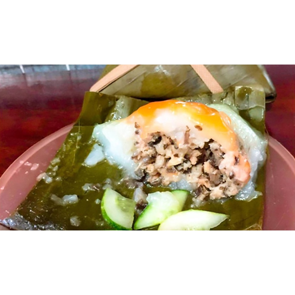 300g thịt nạc dăm bầm nhỏ. 10g nấm mèo ngân nước cho nở lớn, cắt bỏ gốc rễ, bầm nhuyễn nấm. Trộn đều thịt, nấm mèo + 1 muỗng củ hành tím bầm nhuyễn + 1/3 muỗng cà phê muối + 1 muỗng nhỏ tiêu + 2 muỗng cà phê nước mắm ngon. Xào chín tất cả với 2 – 3 muỗng súp dầu ăn. Chia đều nhân thành từng phần nhỏ. Trứng cút luộc chín bóc bỏ vỏ. Thành phần bột bánh giò Vĩnh Thuận Bột gạo 80%, bột năng (tinh bột khoai mì) 20%
