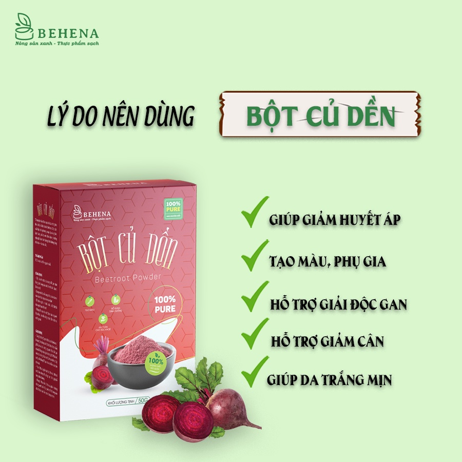 Bột Củ Dền Behana - Hộp 50g (2gói x 25g), bột tạo màu tím đẹp mắt cho món ăn và tốt cho sức khỏe siêu tiện lợi
