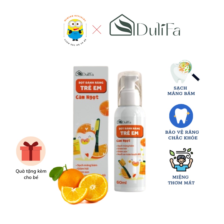 Giới thiệu Bọt đánh răng trẻ em Dulifa chăm sóc răng miệng cho bé từ 2-10 tuổi, vị cam ngọt (DT 60ml)