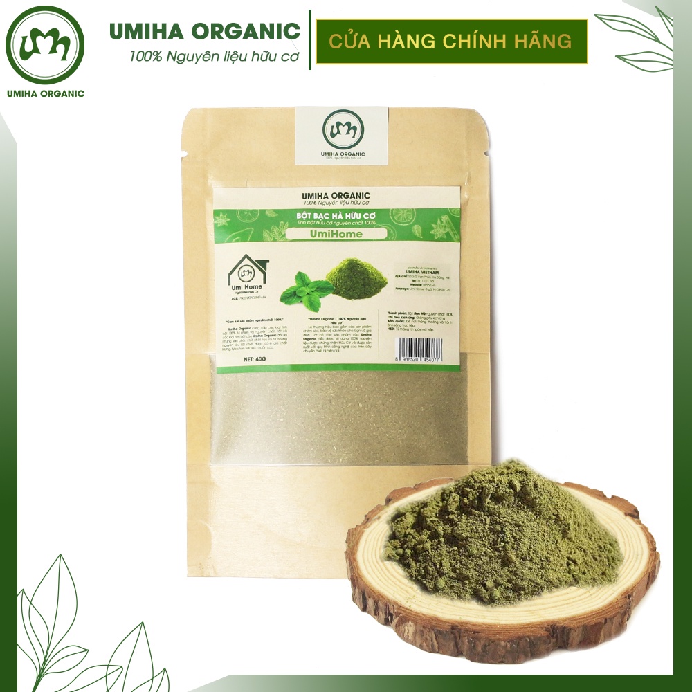 Giới thiệu Bột đắp mặt nạ Bạc Hà nguyên chất UMIHOME hữu cơ 135G dùng dưỡng da trắng mịn, làm mờ thâm mụn, ngừa nếp nhăn