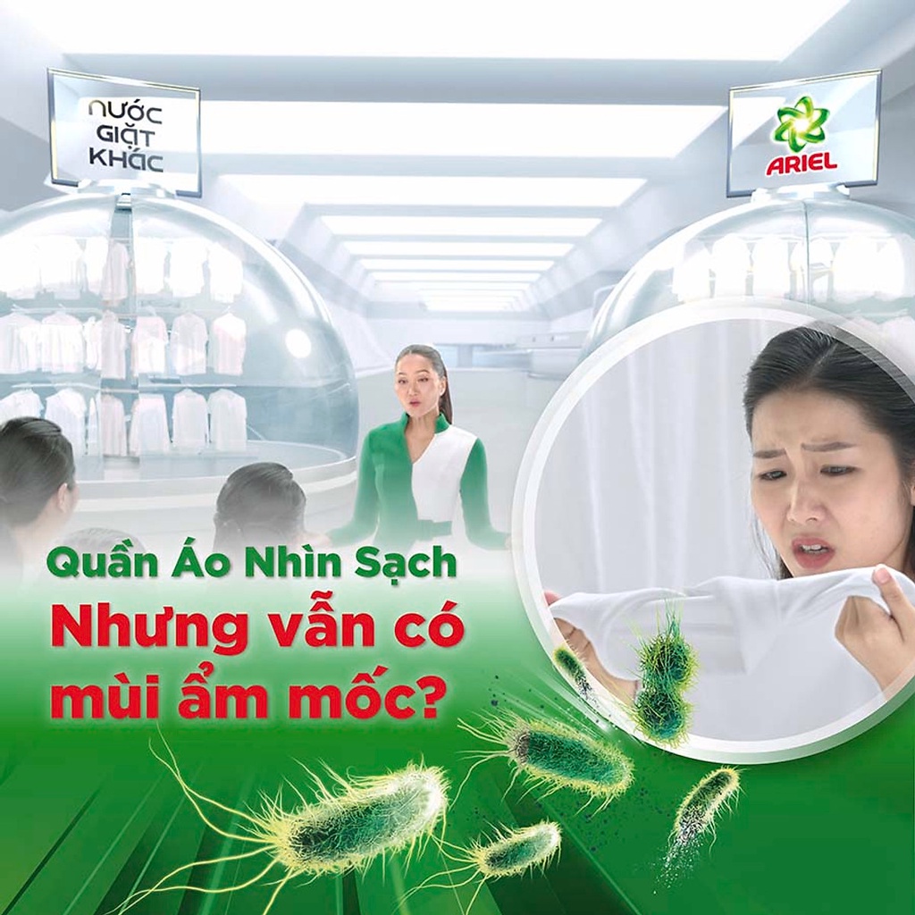 Bột giặt Ariel nay bổ sung hương Downy đam mê quyến rũ lưu lại hương thơm như nước hoa trên quần áo sau khi giặt.