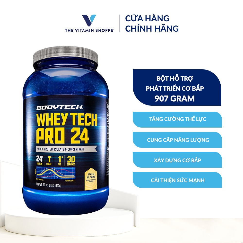 BỘT DINH DƯỠNG HỖ TRỢ PHÁT TRIỂN CƠ BẮP BODYTECH WHEY TECH PRO 24 PROTEIN ISOLATE VANILLA ICE CREAM TẬP GYM THỂ THAO