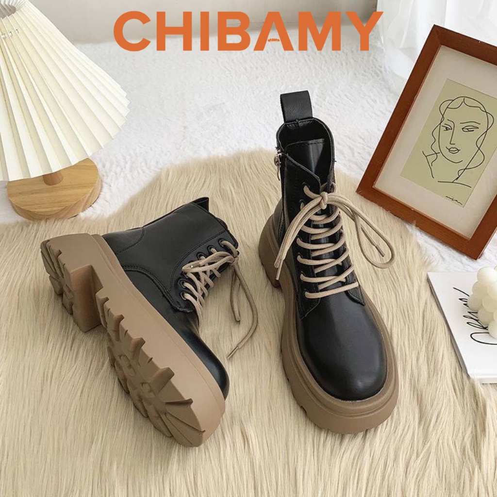 Bốt nữ MARTIN da mềm cổ cao CHIBAMY, giày boots ulzzang đế răng cưa 5p phong cách tuổi teen