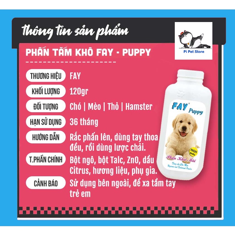 Giới thiệu Bột tắm khô cho chó mèo Fay - Phấn tắm khô cho chó mèo Fay