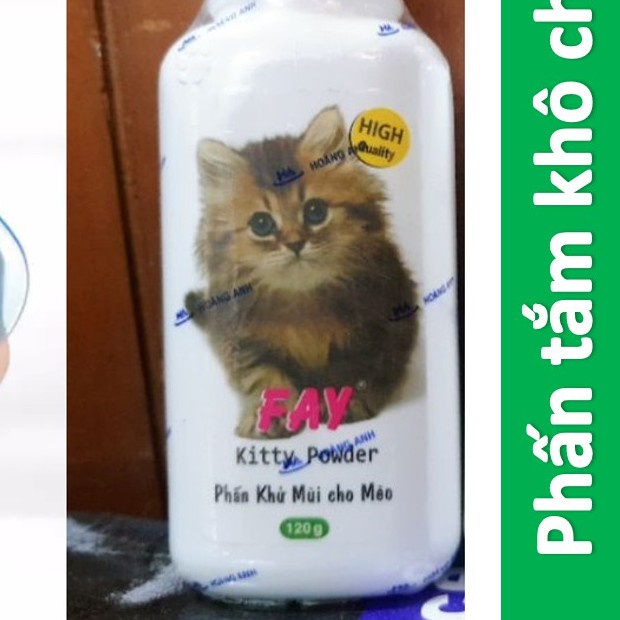 PHẤN THƠM KHỬ MÙI, TẮM KHÔ CHO CHÓ MÈO – * Phấn khử mùi, làm khô sạch cho da lông thú bằng phương thức tắm khô, chuyên dùng cho: - Mèo nhỏ, thường dễ bị bệnh khi tắm bằng nước. - Các mèo lớn đang trong thời gian bị bệnh. - Làm sạch cho mèo khi thời tiết lạnh, khi không tắm bằng nước. - Đặc biệt mèo không thích nghi tắm nước như chó nên sản phẩm này là thiết yếu, mỗi tuần hay 2 tuần tắm cho mèo một lần thôi, bạn có thể xen kẽ sử dụng sản phẩm này để giữ cho boss luôn sạch sẽ và thơm tho mà không cần đụng đến nước nhé ^^ * Sản phẩm chính hãng của công ty mỹ phẩm Hoàng Anh (Fay). Hướng dẫn sử dụng: - Rắc phấn lên mình mèo, dùng tay xoa đều đến bề mặt da. Sau đó dùng lược chải xuôi theo chiều lông mèo để lấy phần phấn đã gắn kết với chất bẩn ra khỏi mình mèo. Bảo quản: - Để nơi khô mát - Tránh ánh sáng trực tiếp Cảnh báo: - Để xa tầm tay trẻ em. - Chỉ dùng cho thú nuôi và sử dụng bên ngoài.