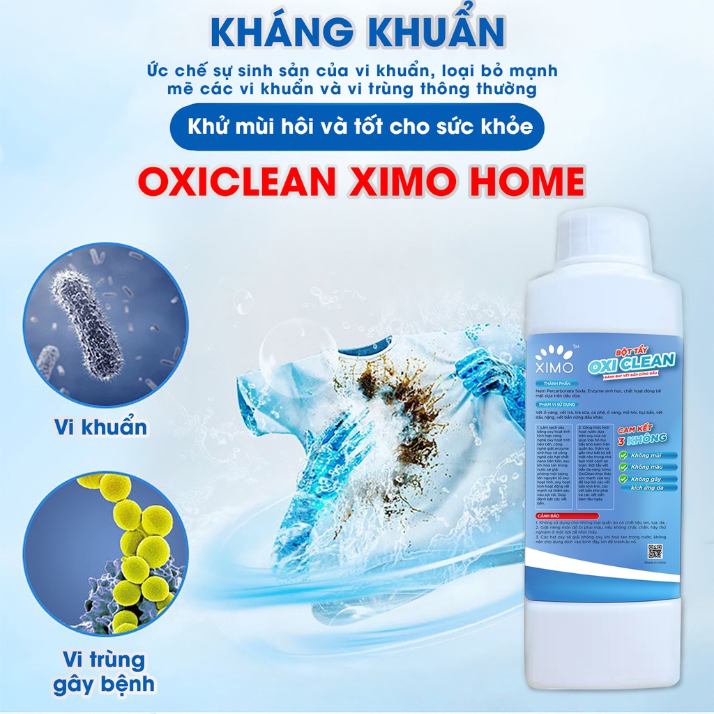 Bột tẩy vết bẩn đa năng Oxi Clean Ximo Home đánh bay các loại vết ố bẩn cứng đầu làm trắng quần áo, đồ dùng trong nhà - Có quá nhiều vết bẩn khác nhau trong sinh hoạt hàng ngày đặc biệt quần áo và đồ dùng của bạn, sẽ rất tốn rất nhiều chi phí để xử lý cho từng loại vết bẩn nhưng không hiệu quả và gây mùi không tốt cho sức khỏe, nắm bắt được điều đó, Ximo Home ra mắt bột tẩy vết bẩn đa năng Oxi Clean đánh bay tất cả các loại vết bẩn cứng đầu * LƯU Ý: SỬ DỤNG CÔNG NGHỆ OXYGEN HOẠT TÍNH MỚI GIÚP LÀM SẠCH CỰC MẠNH, ĐẶC BIỆT HOÀN TOÀN THÂN THIỆN MÔI TRƯỜNG VỚI CAM KẾT 4 KHÔNG: KHÔNG MÀU - KHÔNG MÙI - KHÔNG ĐỘC HẠI - KHÔNG GÂY KÍCH ỨNG DA.