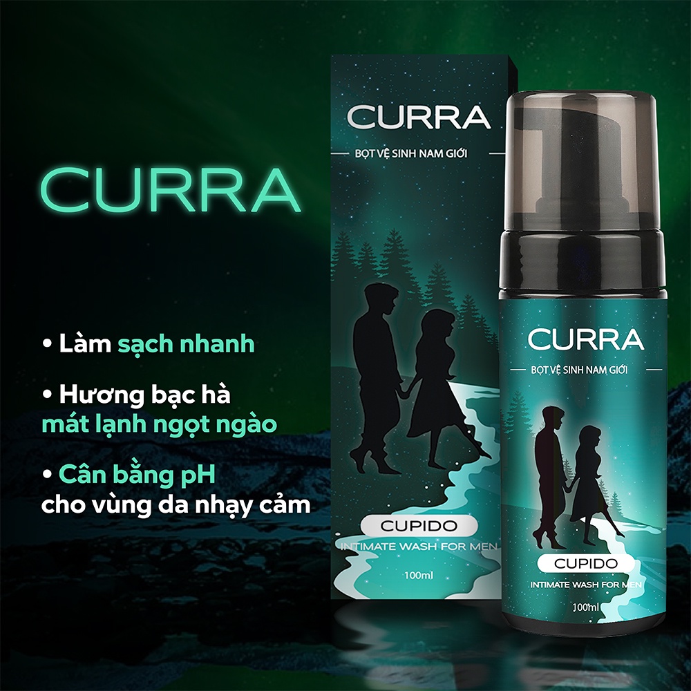 Giới thiệu Bọt Vệ Sinh Nam Giới 17CM CURRA Cupido 100ml, Dung Dịch Vệ Sinh Nam Tạo Bọt Hương Bạc Hà Mát Lạnh
