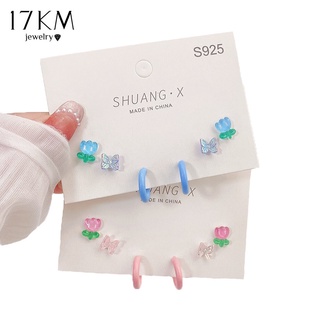 Set khuyên tai 17KM mạ bạc S925 thiết kế nơ bướm hoa hình học nhiều mẫu và màu sắc tùy chọn thời trang cho nữ