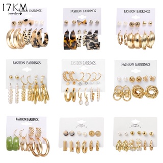 Bộ khuyên tai 17KM hình tròn nhiều màu sắc thời trang dành cho nữ