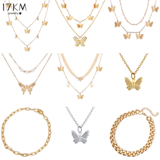 Vòng cổ choker vàng nhiều lớp 17KM hình bướm đính ngọc trai thời trang Hàn Quốc cho nữ