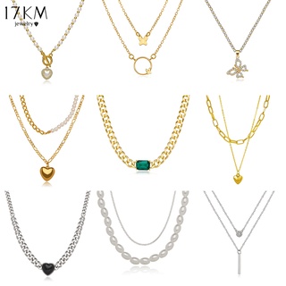 Vòng cổ 17KM Y2K mạ bạc đính ngọc trai nhân tạo thời trang tùy chọn kiểu dáng