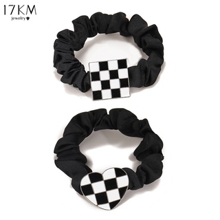 Dây cột tóc 17KM mặt hình vuông/trí tim hoạ tiết kẻ sọc đen đơn giản phụ kiện tóc xinh xắn cho nữ