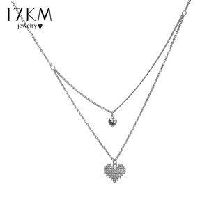 Vòng cổ 17KM thiết kế hai lớp mạ bạc mặt trái tim đính đá thanh lịch cho nữ
