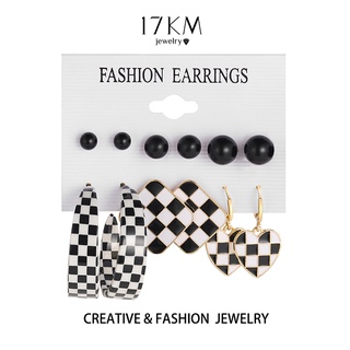 Khuyên tai 17KM nhiều kiểu dáng phong cách hình học màu trắng đen thời trang