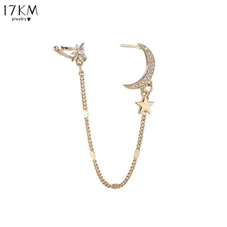 Khuyên tai 17KM dạng kẹp mặt hình ngôi sao mặt trăng màu vàng đơn giản