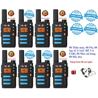 Bộ 8 Chiếc Bộ đàm Siêu nhỏ cao cấp 2 Phương thức Sạc ABS AB3688 (Hàng chính Hãng, Siêu Đẹp, Hỗ trợ Tắt/Bật rảnh Tay)