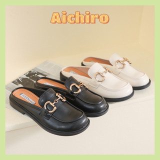 Dép sục nữ da lì phối khoá siêu xinh,Giày sục moca mũi tròn 2 màu đen,kem,sục da Aichiro