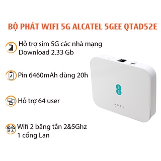 Bộ Phát Wifi Cầm Tay 5G Alcatel 5GEE QTAD52E Tốc Độ 2.33Gb Pin 6460Mah, Hỗ Trợ Băng Tần Kép Kèm cổng LAN, Kết Nối 64User