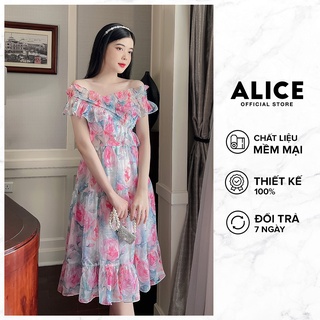 Váy Hoa Trễ Vai Dáng Xòe ALICE Chất Vải Tơ Óng Lót Lụa Thoáng Mát Kiểu Dáng Thanh Lịch Quyến Rũ V813