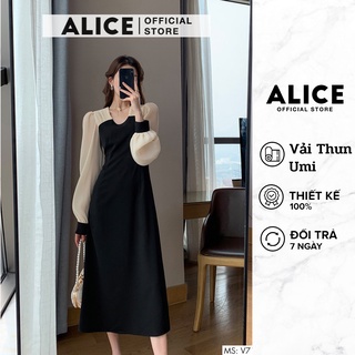 Váy Dài Tay Tiểu Thư ALICE V717, Thiết Kế Ôm Eo Tôn Dáng Bo Cổ Tay Sang Chảnh