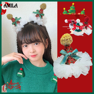 Phụ kiện kẹp tóc AMILA hình nơ lưới ba chiều dễ thương dành cho bé giáng sinh