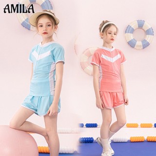 AMILA Set Đồ Thể Thao Ngắn Tay Phong Cách Hàn Quốc Cho Bé Gái