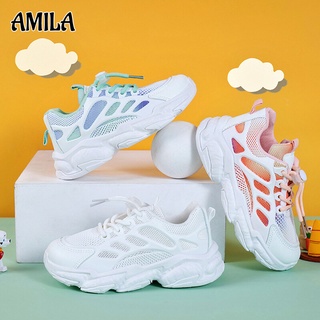 Giày thể thao AMILA phối lưới thoáng khí màu trắng cỡ lớn thời trang cho bé giày thể thao bé nam giày thể thao trẻ em nữ