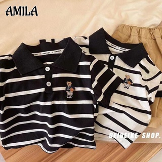 Áo thun AMILA tay ngắn có cổ họa tiết sọc ngang thời trang cho bé trai