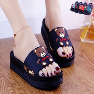 Dép Đi Trong Nhà Tắm Đế Dày Tăng Chiều Cao In Họa Tiết Gấu Hoạt Hình Dễ Thương Thời Trang Mùa Hè Cho Nữ Tth093