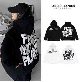 Áo Khoác Hoodie Khoá Kéo Angel-Land From Another Planet White - Black Zip Hoodie Nỉ Bông - FAZ